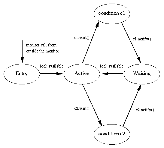 - Only one process at a time may be be active in a monitor.