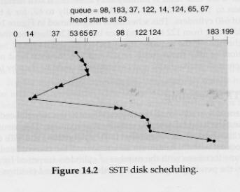 - SSTF: shortest seek time first