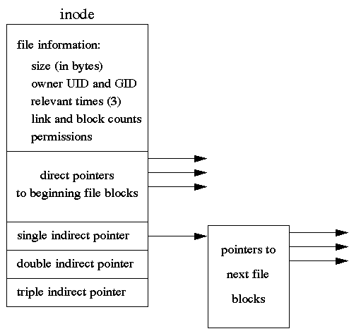 Figure 5.3 (page 160): Schematic structure of a traditional UNIX inide.